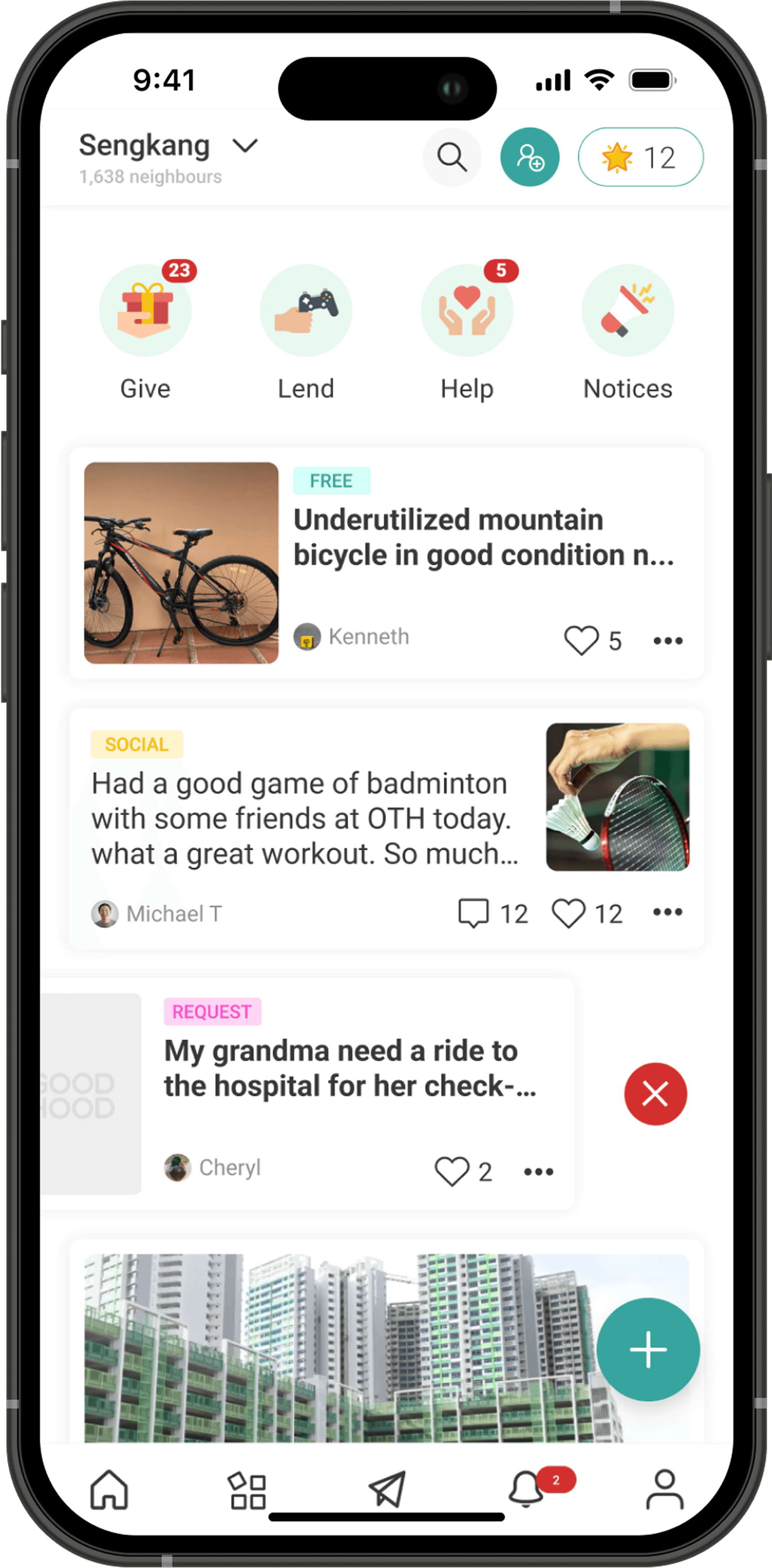 We reduced the number of steps required to create a post, focusing on speed and convenience. Users could post an item to Give or request Help in just a few taps.
