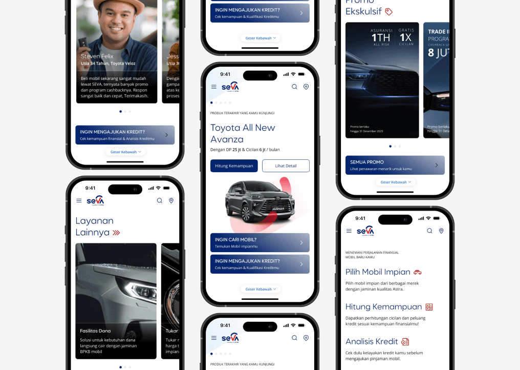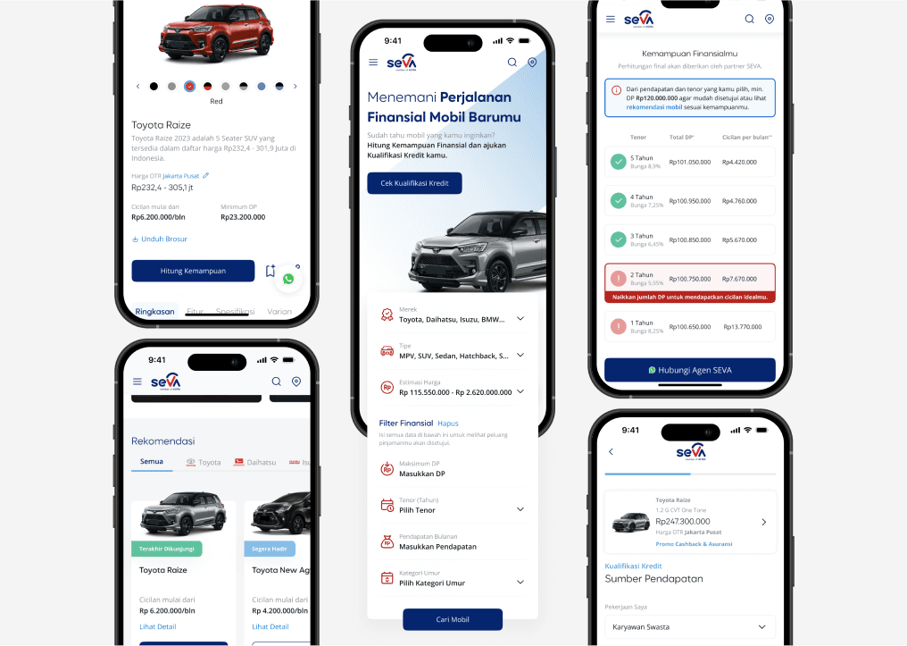 Users came to browse, but SEVA asked them to calculate. This mismatch created friction, especially for users unfamiliar with how financing worked. SEVA’s IA feature offered fast financing approval, but it was not visible or intuitive enough to build trust or engagement.