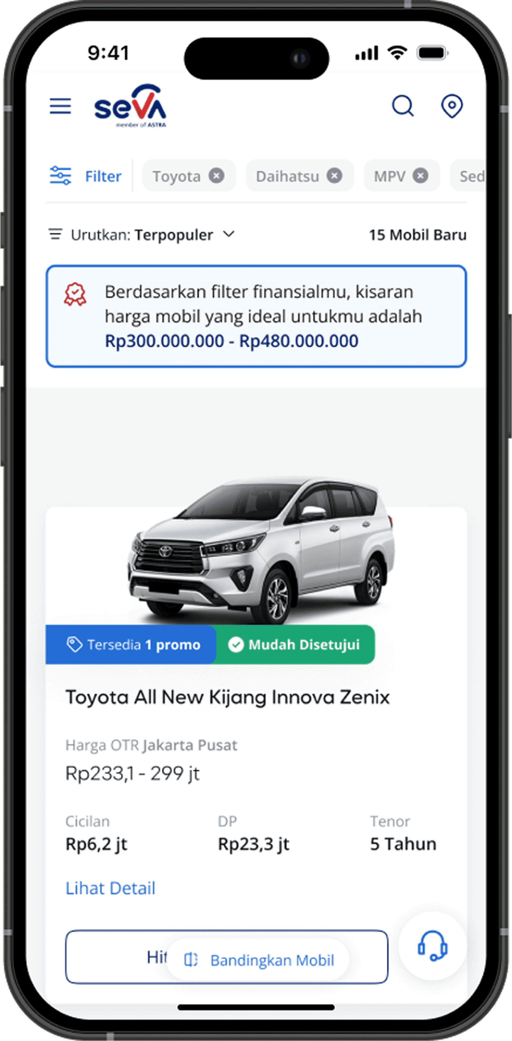 We redesigned the search to be the front door of the experience. Users could browse cars by type, then filter by financial criteria, like income, loan tenor, or down payment, integrating financing without forcing it upfront.